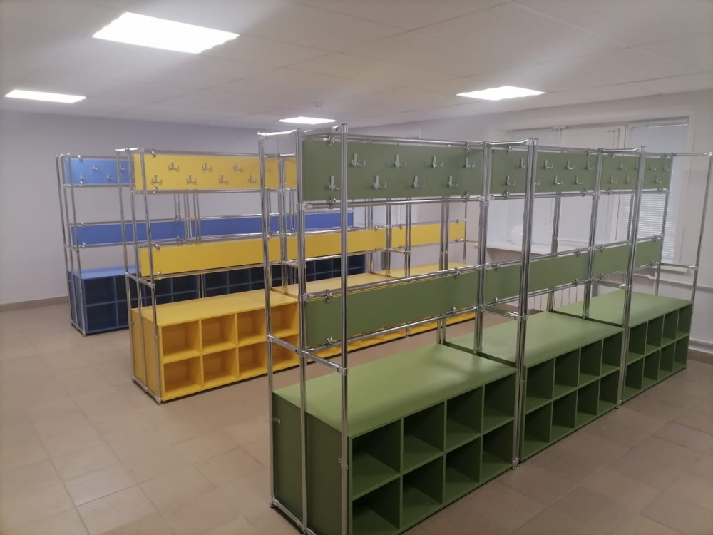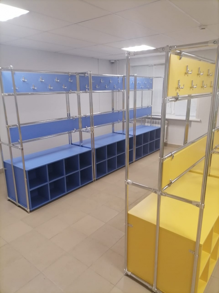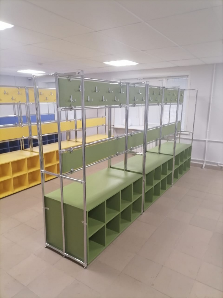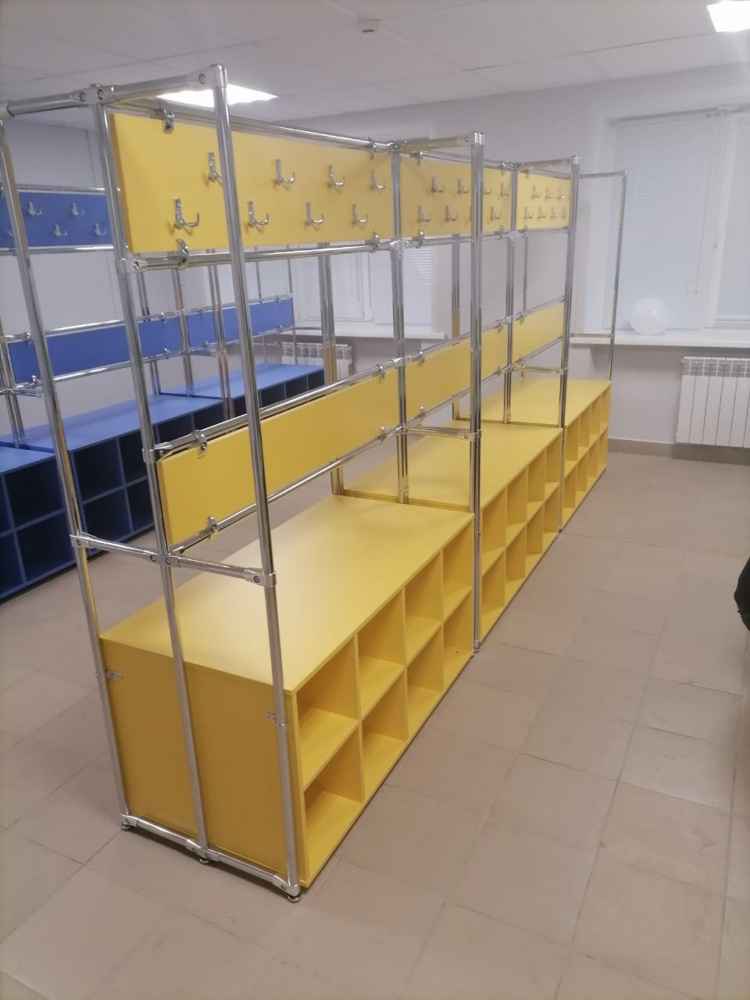 Задача: Зона гардероба. В связи с новой концепцией учреждения- мебель сделать яркой, неповторимой, мотивирующей учащихся на учебу.