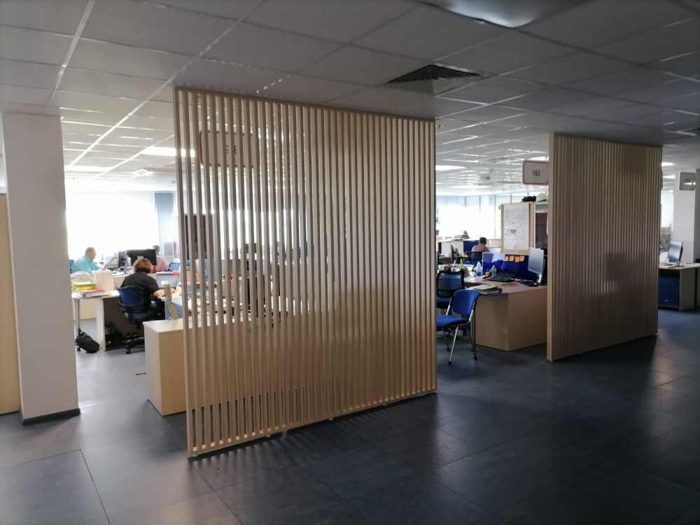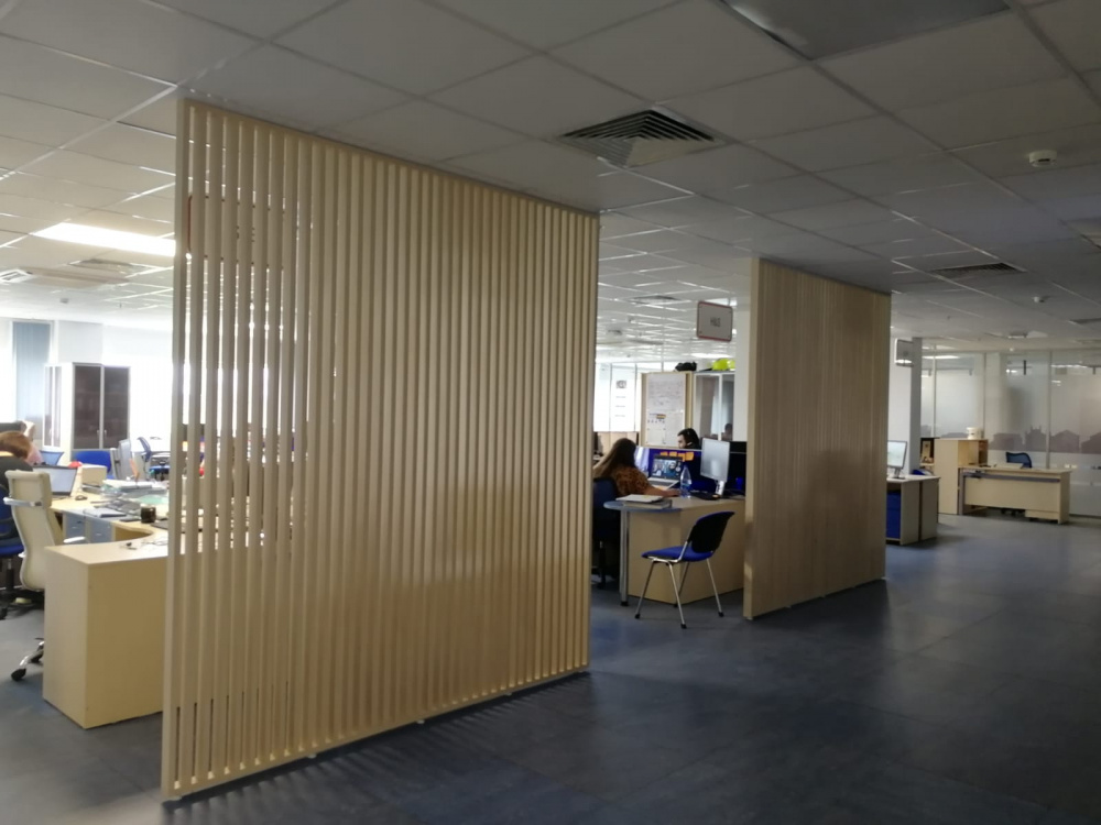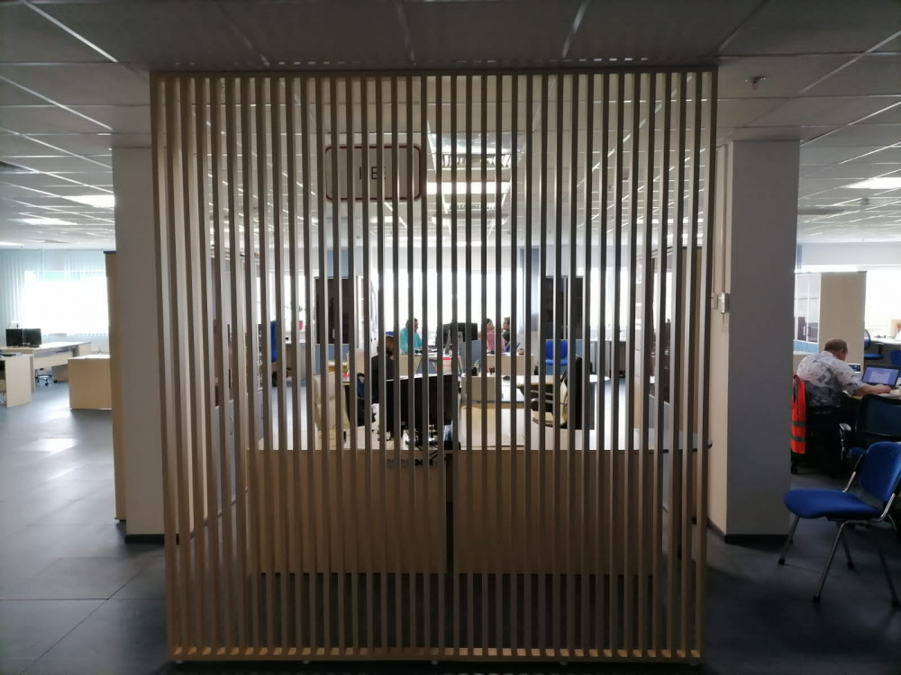 Решение: Для решения данного вопроса были предложены реечные перегородки. Они позволили — зонировать пространство, оставить естественное освещение, подчеркнуть современный дизайн помещения. Данные перегородки имеют возможность переноса на другое место.