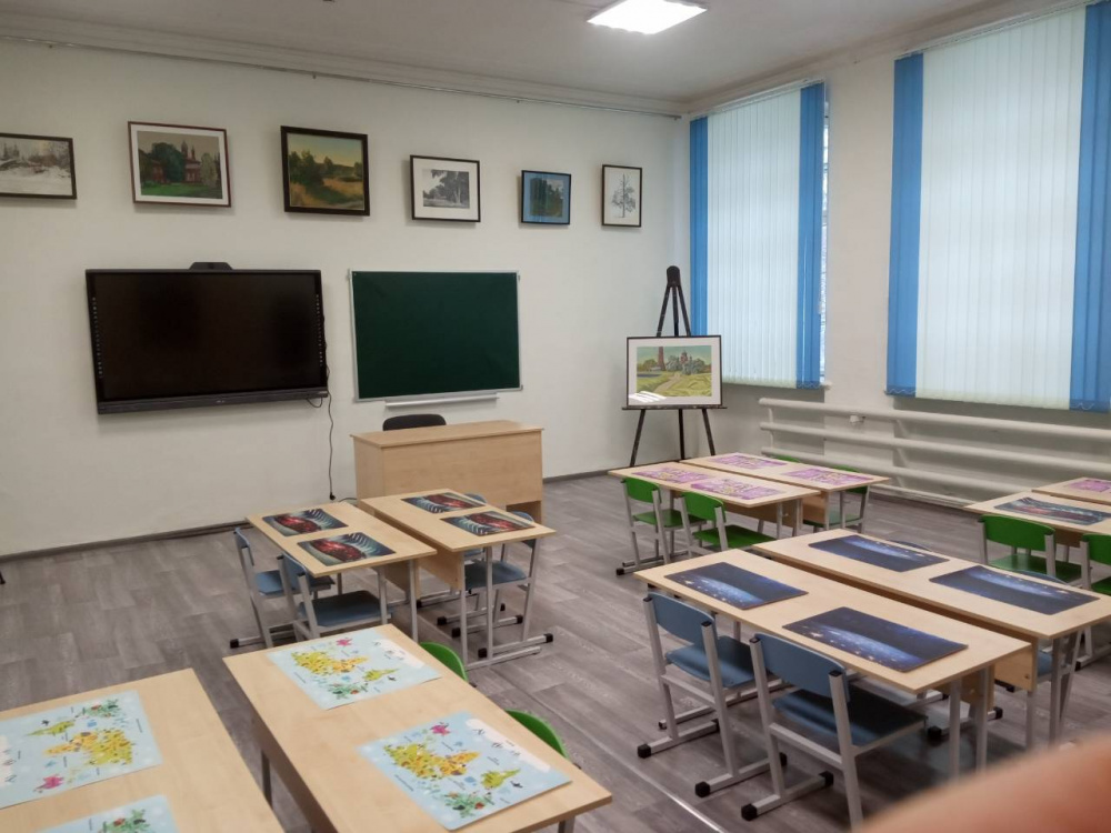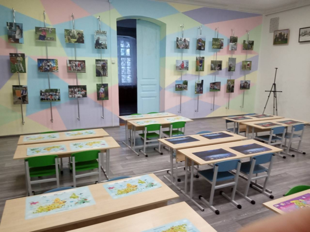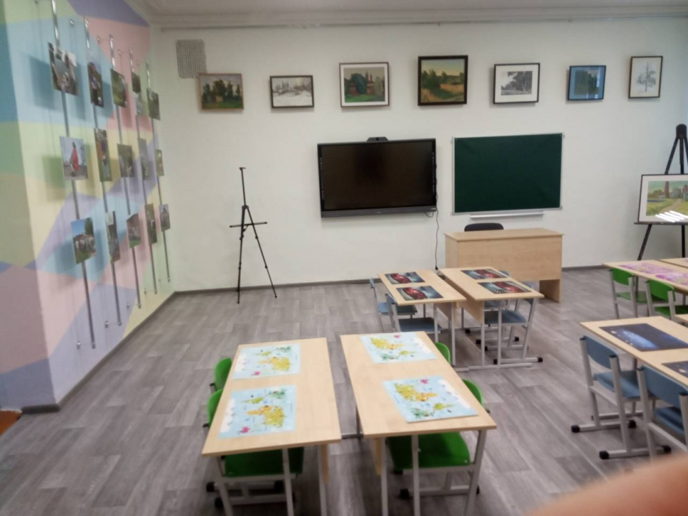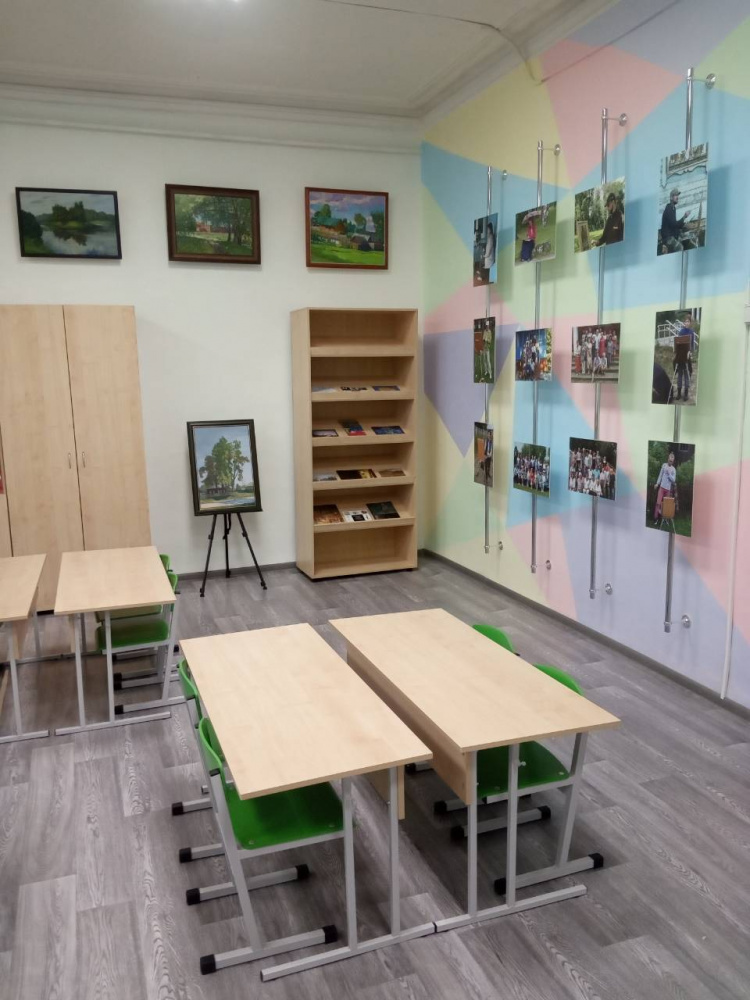 Задача: Сделать интересное, яркое помещение за очень небольшой бюджет. Кроме мебели поставить мобильные мольберты.