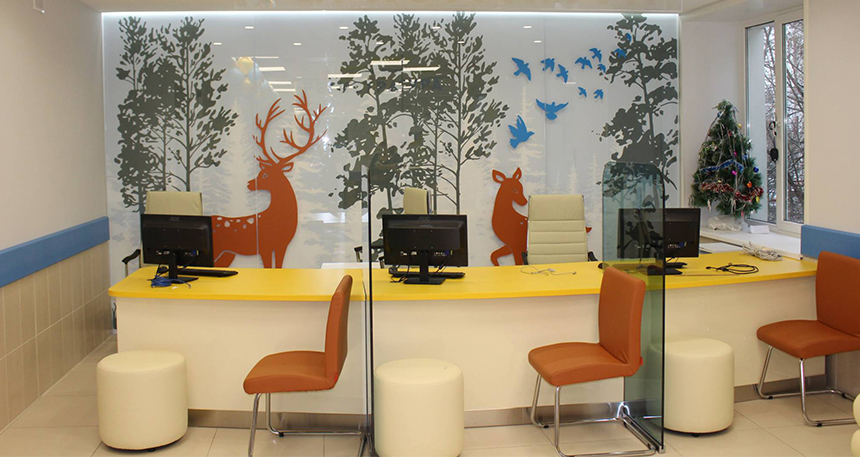 Решение: В компанию Тритон (г. Владимир) одновременно обратилось 3 поликлиники (ГБУЗВО "Детская городская поликлиника №1 г.Владимира", ГБУЗ ВО " Областная детская клиническая больница", ГБУЗ ВО «ГП №1 г.Владимира» с просьбой помочь реализовать данный проект. 2 поликлиники имели детально разработанный дизайн и мебель и другое оборудование надо было поставить в соответствии с данным проектом. Для городской поликлиники № 1 дизайн и расстановку мебели предложили специалисты компании Тритон.