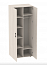 Шкаф для одежды двустворчатый с 2 отделениями. Одно с 5 полками для одежды, другое с перекладиной для вешалок и 2 полками, изготовлен из ЛДСП 16 мм, двери покрыты кромкой 2 мм, остальные части - кромка 0,4 мм. Поставляется в разобранном виде, в картонной таре.