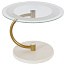 Небольшой, но массивный – вес 12кг! и устойчивый журнальный стол со стеклянной столешницей диаметром 60см, мощным основанием диаметром 42см из лмдф и опорой в виде полукруга идеально подойдет для оформления зон отдыха офисных и общественных помещений, современных частных интерьеров.